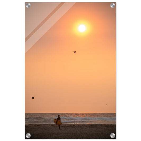 Surfista al tramonto. Stampa acrilica. (Kit per appendere incluso)