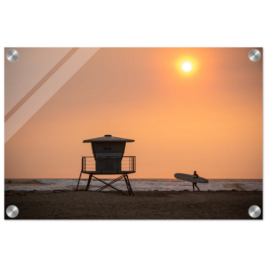 Surfista al tramonto. Stampa acrilica (kit di sospensione incluso)